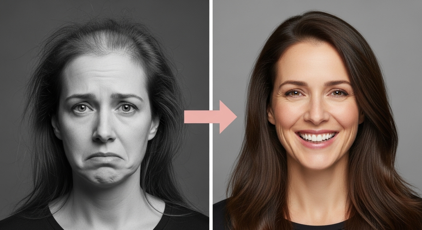 "I was so skeptical because I'd already tried 'everything.' But this was different - it's not just ONE thing, it's a whole system. My scalp is healthier, my hair is shinier, and for the first time in 3 years, I'm not terrified to look at photos of myself." - Michelle R., 48
