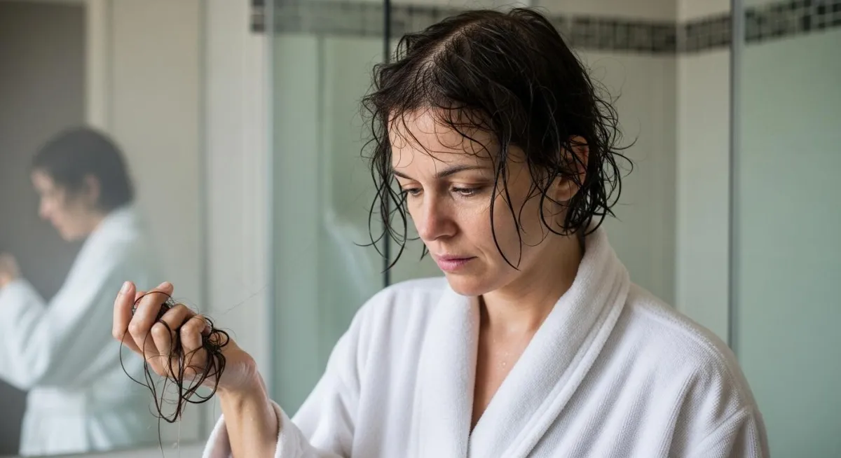"I'm 45 and thought I was just doomed to have thin hair forever. After following this system for 3 months, I actually have to use a hair tie that's TWO loops tighter. My ponytail has body again. I cried happy tears for the first time in years when I noticed the difference." - Sarah M., 45